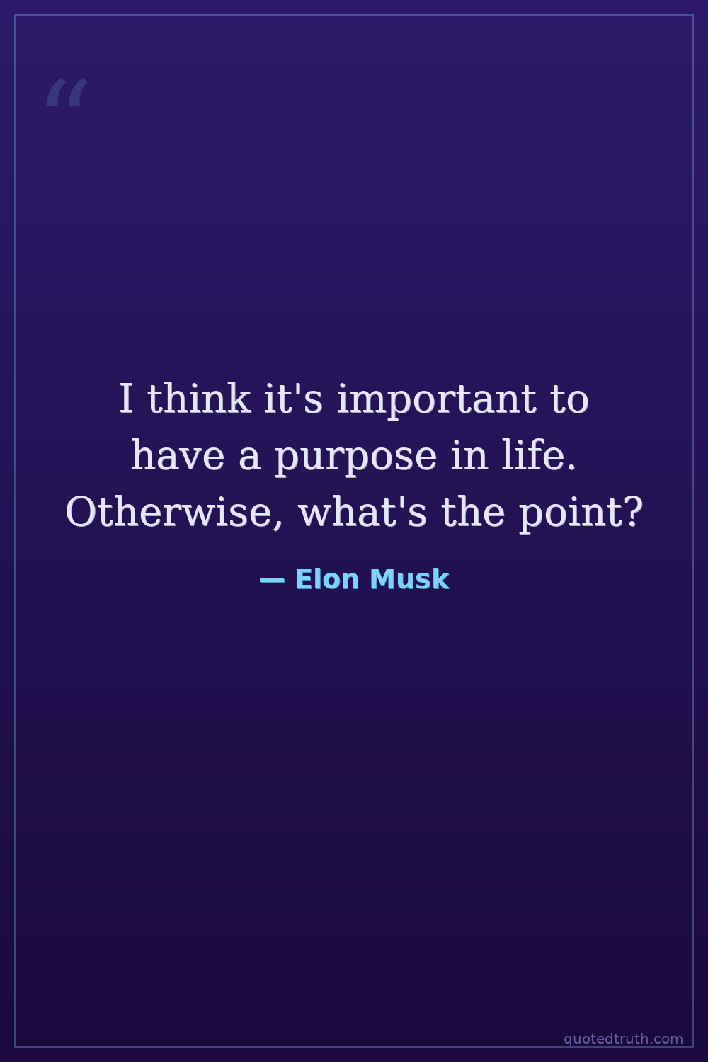 I think it's important to have a purpose in life. Otherwise, what's the point?