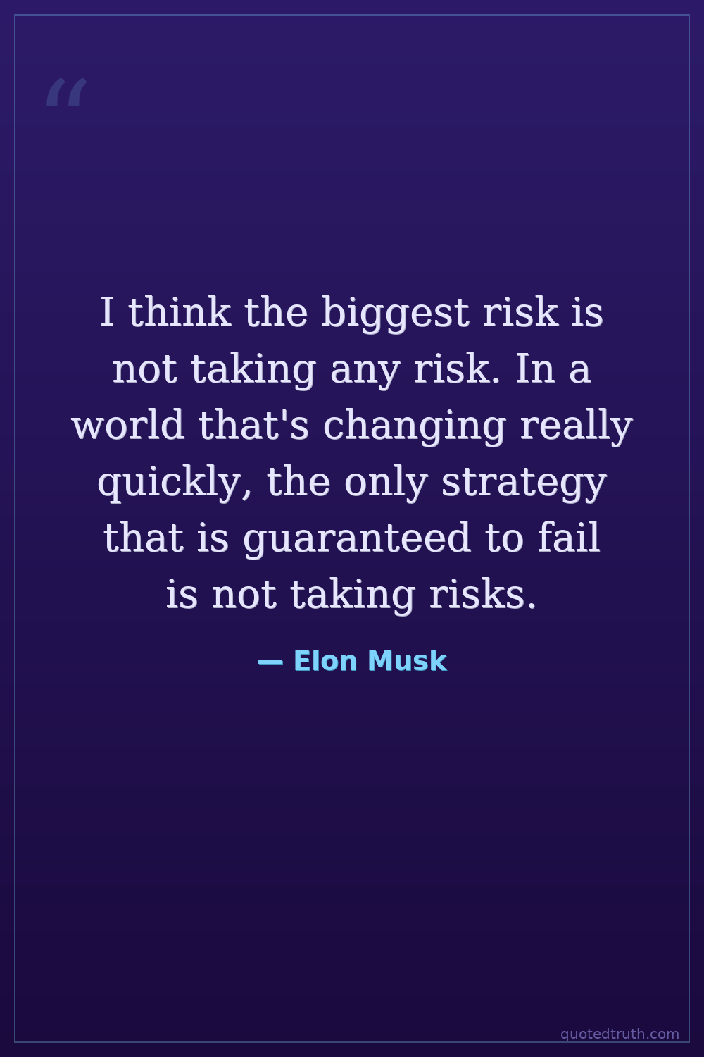 I think the biggest risk is not taking any risk. In a world that's changing really quickly, the only strategy that is guaranteed to fail is not taking risks.