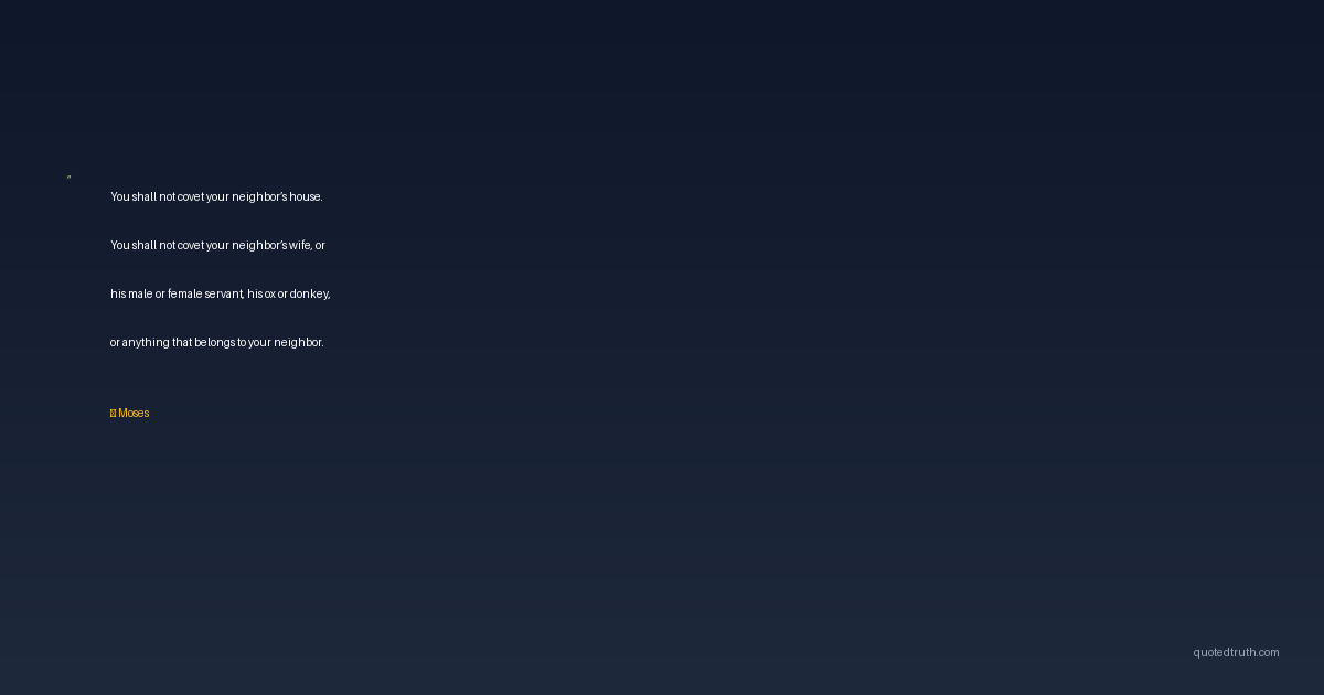 You shall not covet your neighbor’s house. You shall not covet your neighbor’s wife, or his male or female servant, his ox or donkey, or anything that belongs to your neighbor.