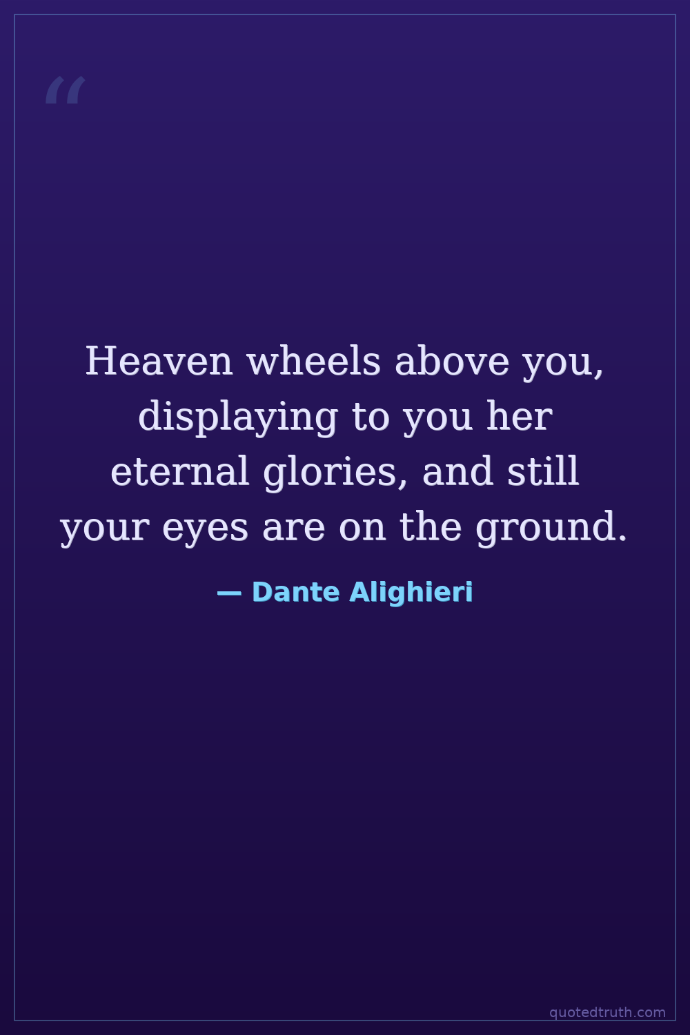 Heaven wheels above you, displaying to you her eternal glories, and still your eyes are on the ground.