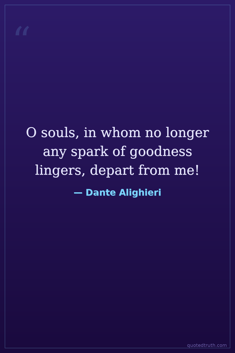 O souls, in whom no longer any spark of goodness lingers, depart from me!