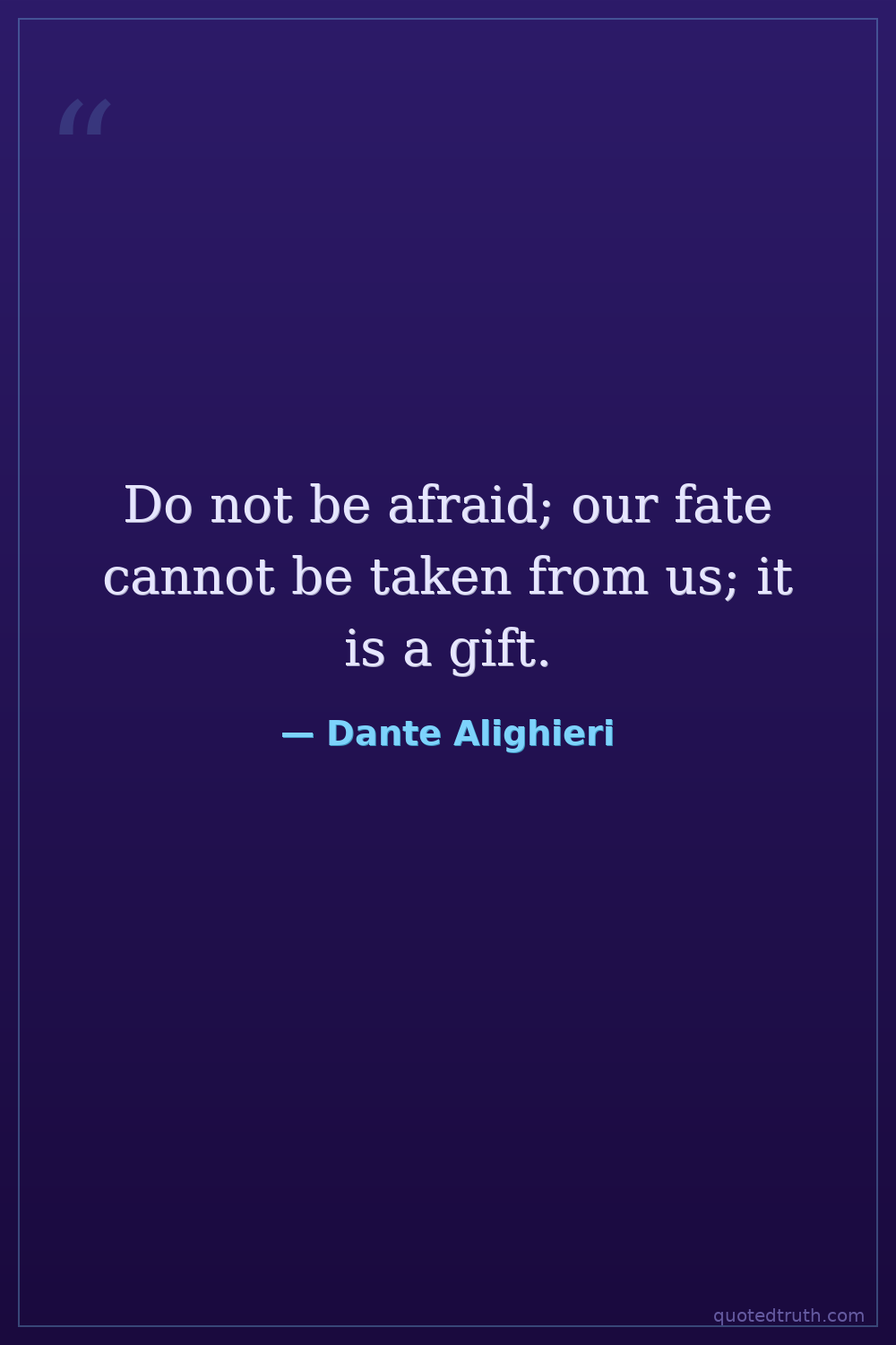 Do not be afraid; our fate cannot be taken from us; it is a gift.