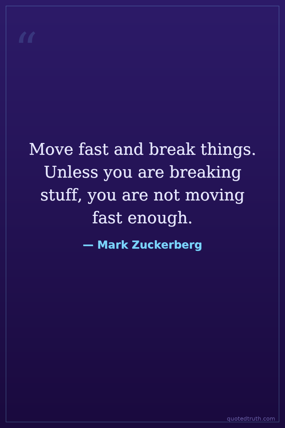 Move fast and break things. Unless you are breaking stuff, you are not moving fast enough.