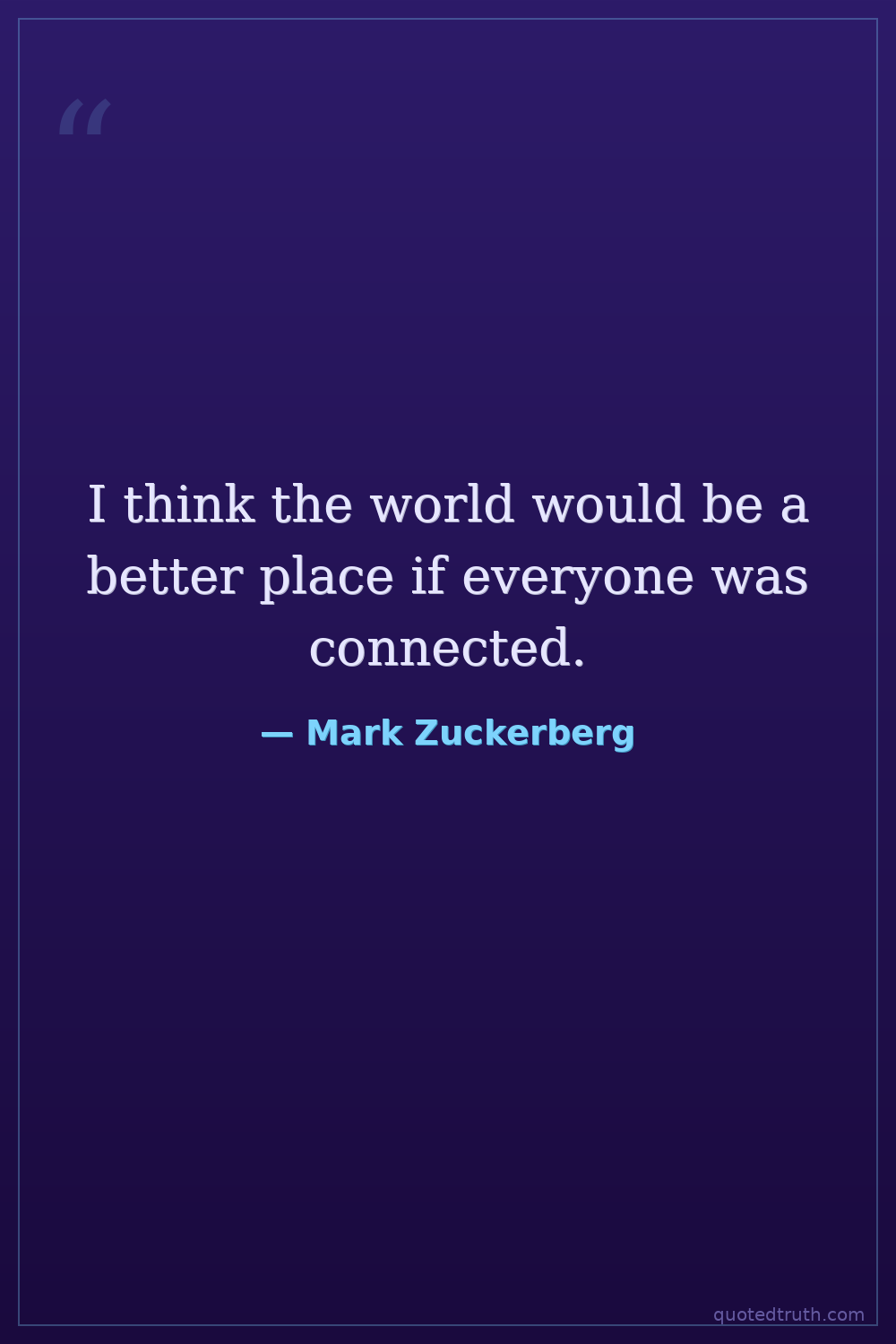 I think the world would be a better place if everyone was connected.