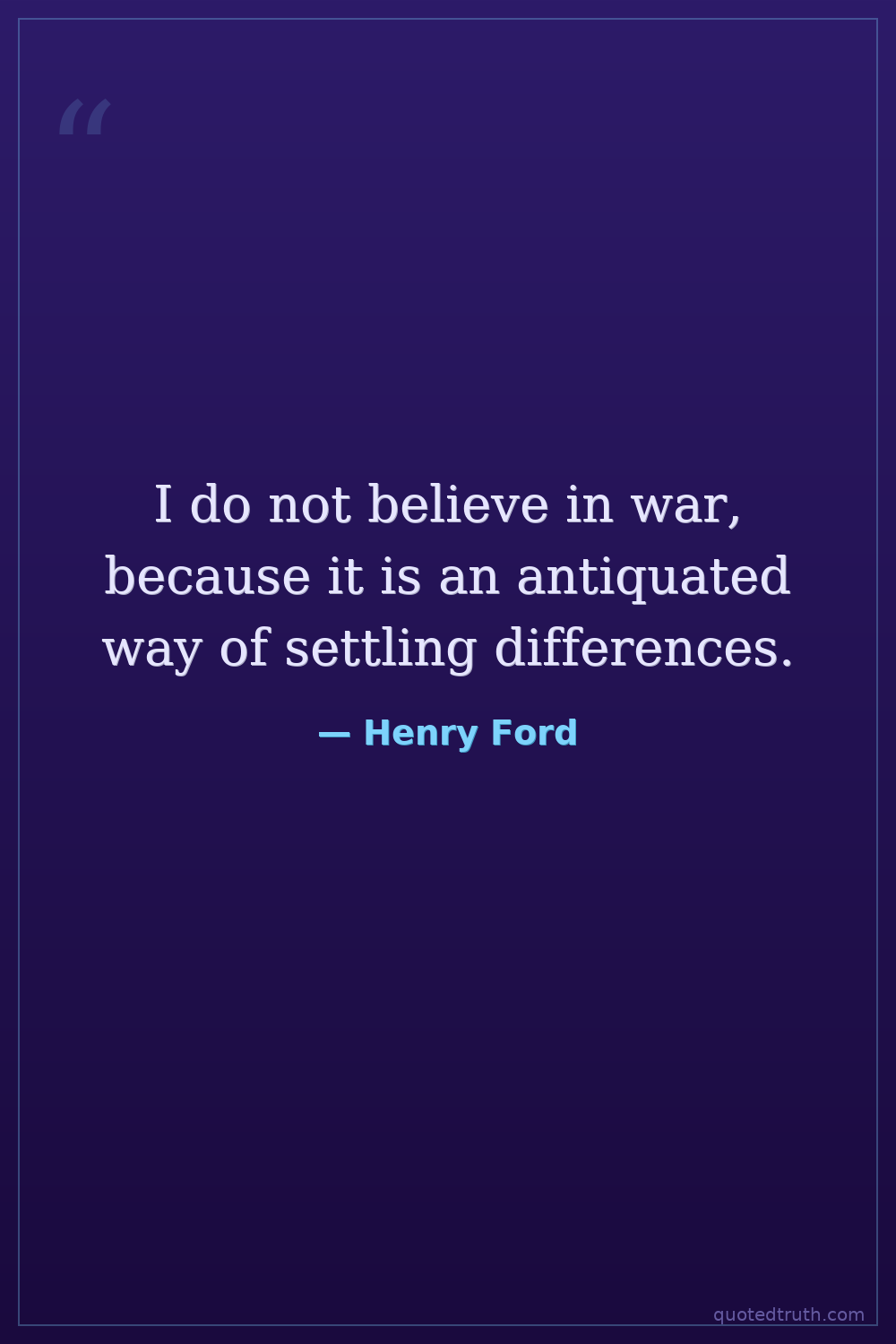 I do not believe in war, because it is an antiquated way of settling differences.