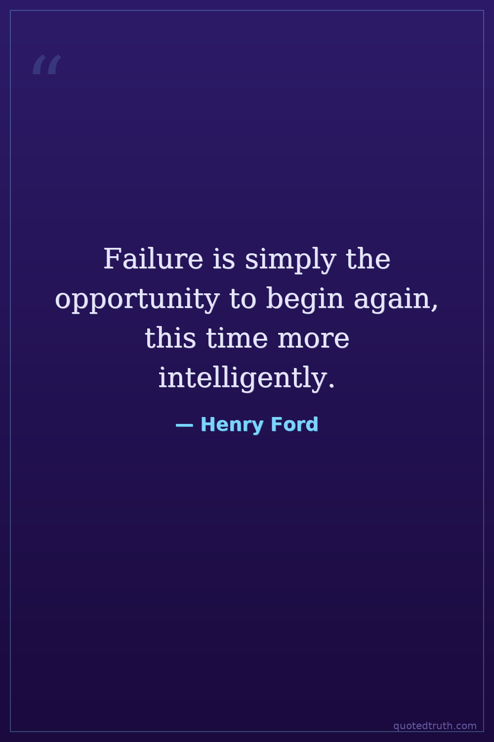 Failure is simply the opportunity to begin again, this time more intelligently.