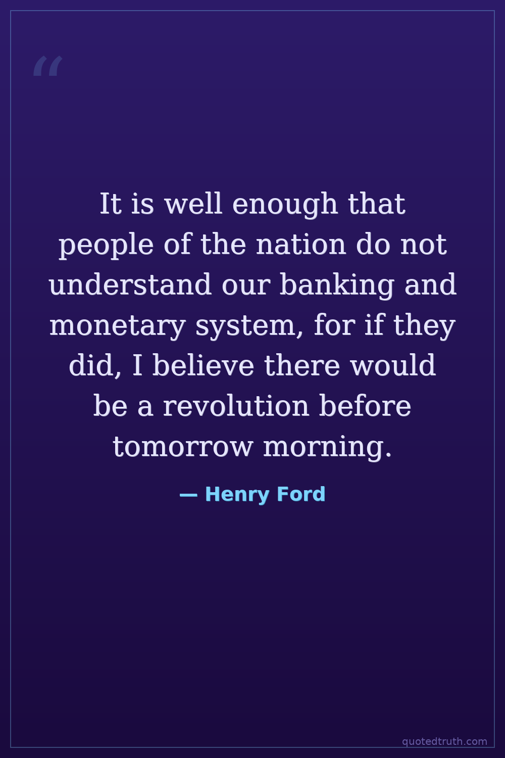 It is well enough that people of the nation do not understand our banking and monetary system, for if they did, I believe there would be a revolution before tomorrow morning.