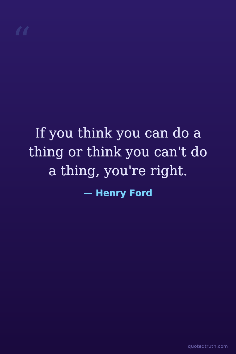 If you think you can do a thing or think you can't do a thing, you're right.