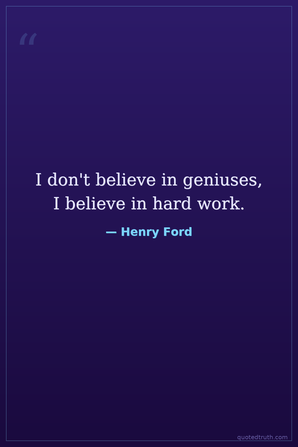 I don't believe in geniuses, I believe in hard work.