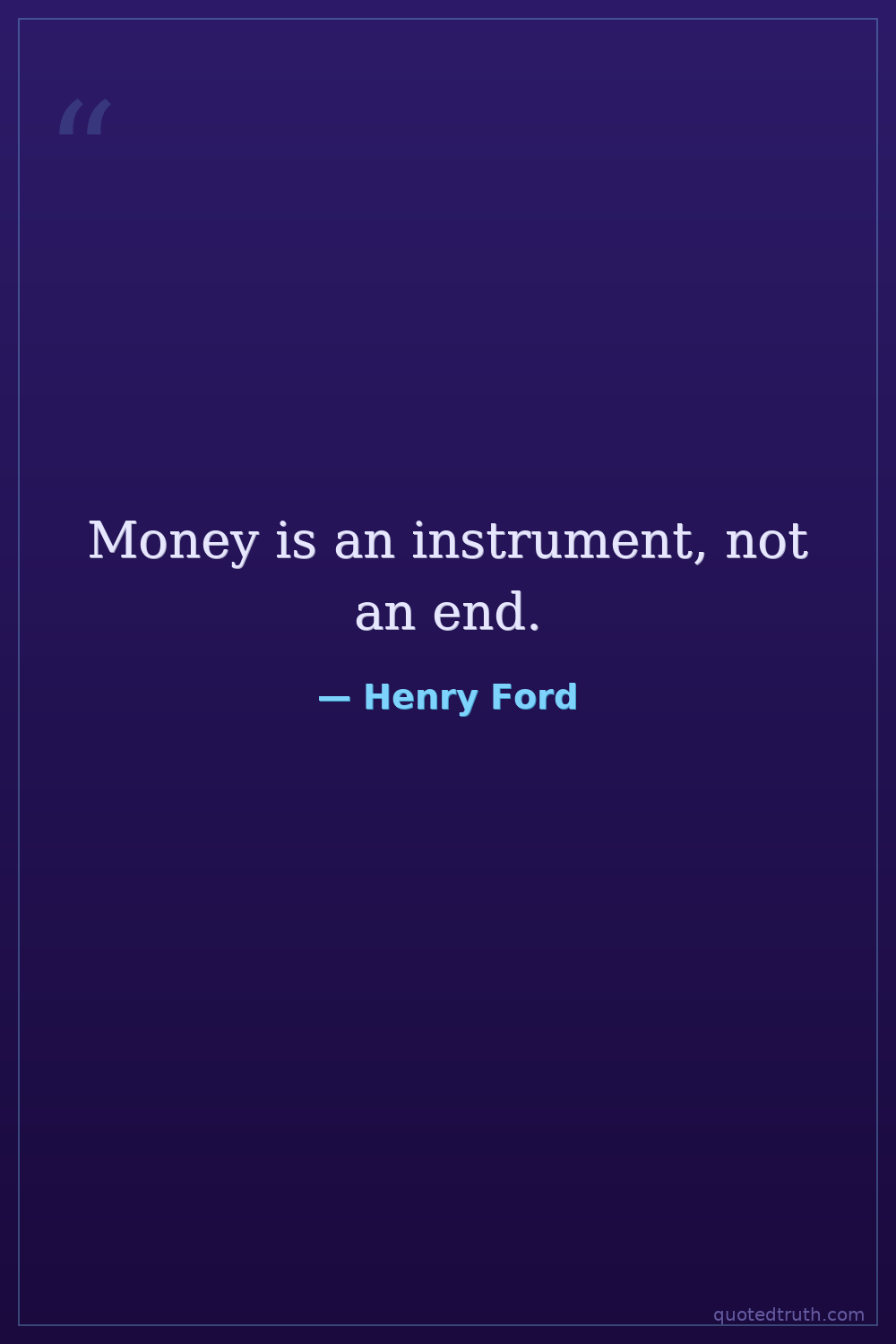 Money is an instrument, not an end.