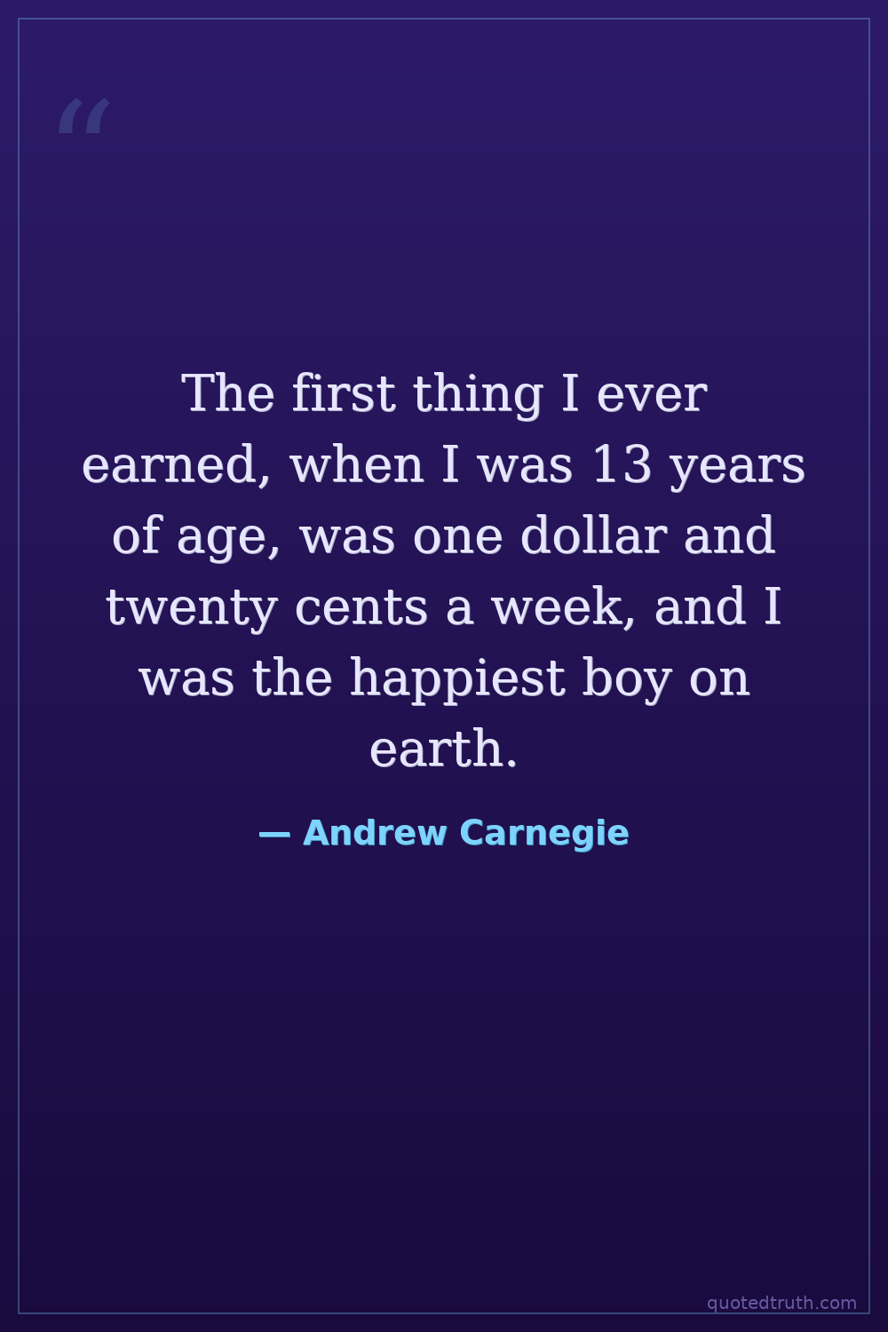 The first thing I ever earned, when I was 13 years of age, was one dollar and twenty cents a week, and I was the happiest boy on earth.