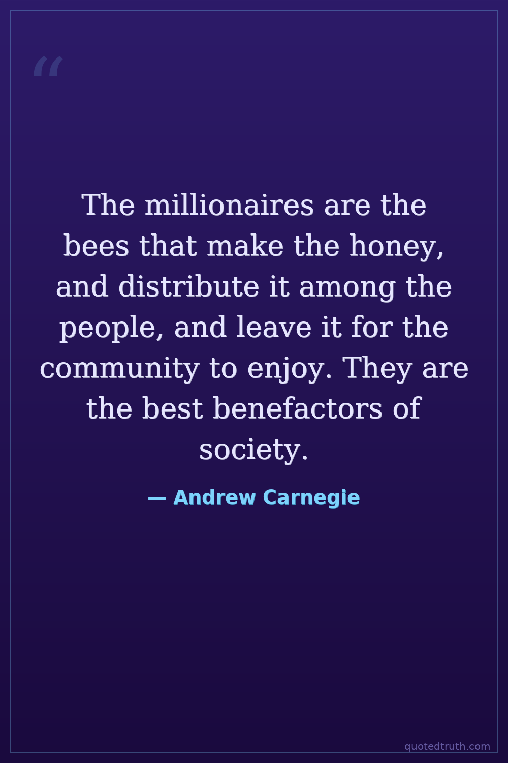 The millionaires are the bees that make the honey, and distribute it among the people, and leave it for the community to enjoy. They are the best benefactors of society.