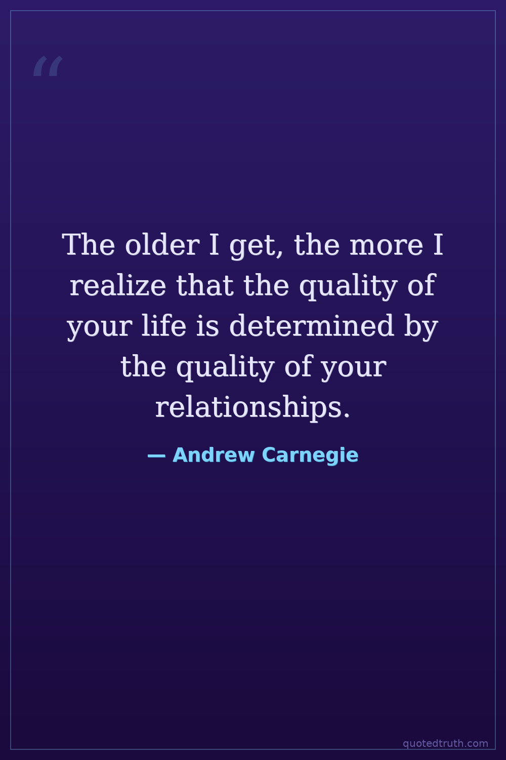 The older I get, the more I realize that the quality of your life is determined by the quality of your relationships.