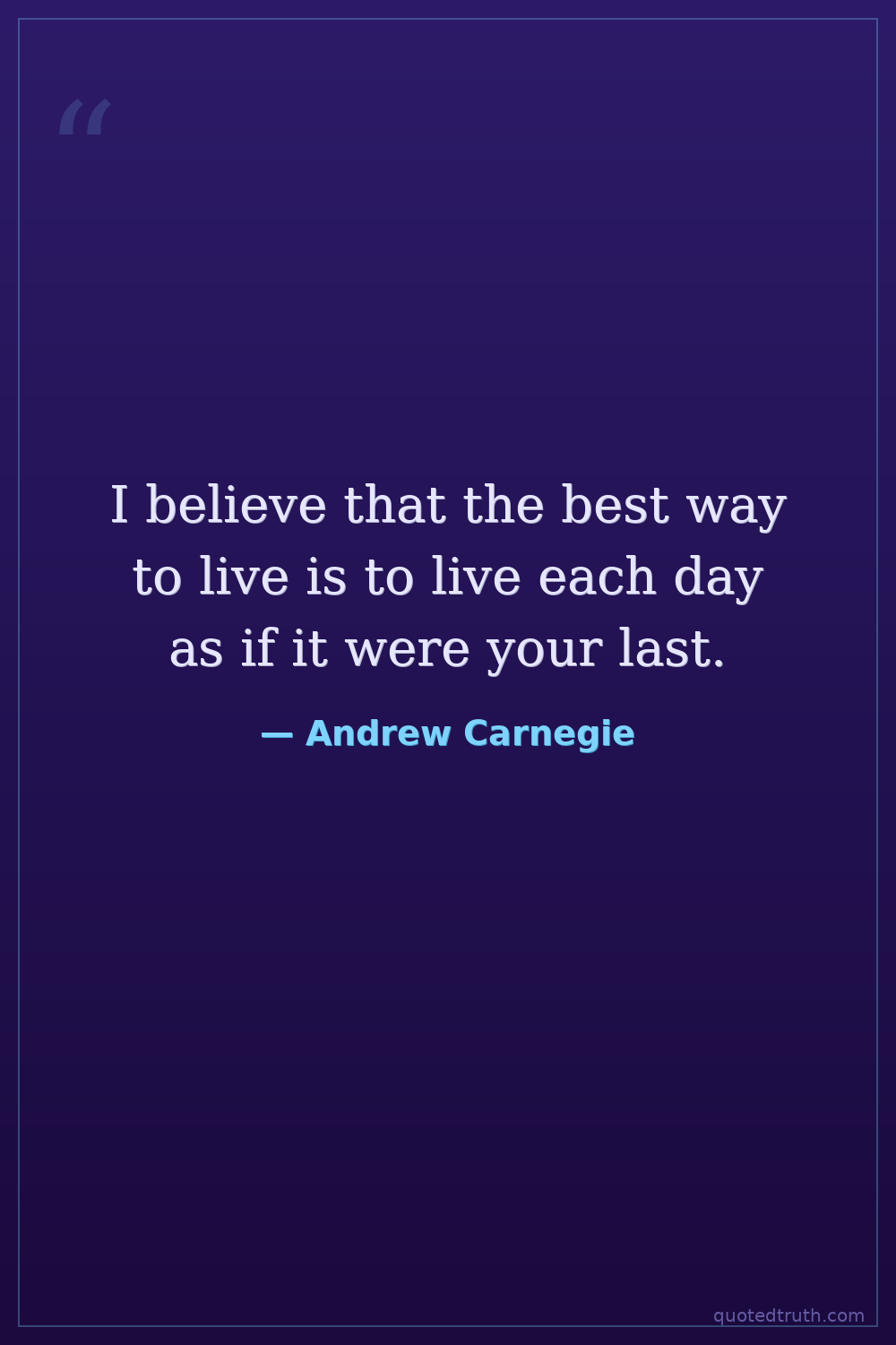 I believe that the best way to live is to live each day as if it were your last.