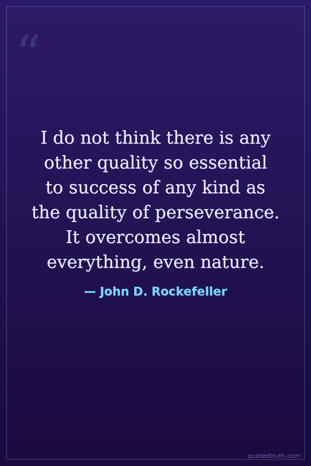 I do not think there is any other quality so essential to success of any kind as the quality of perseverance. It overcomes almost everything, even nature.