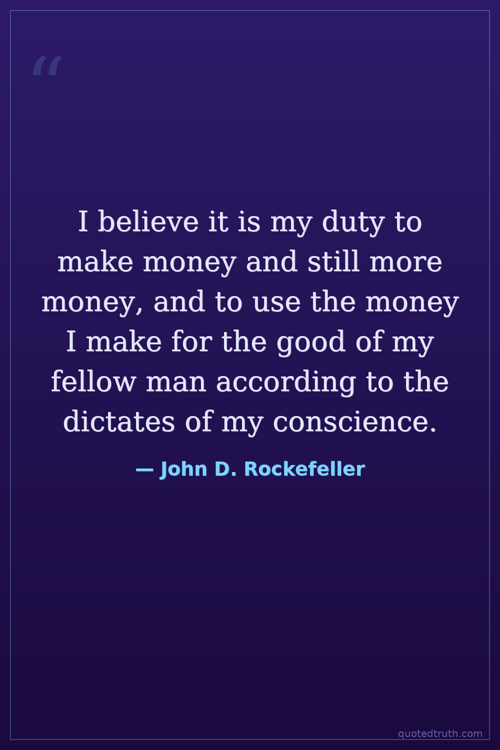 I believe it is my duty to make money and still more money, and to use the money I make for the good of my fellow man according to the dictates of my conscience.