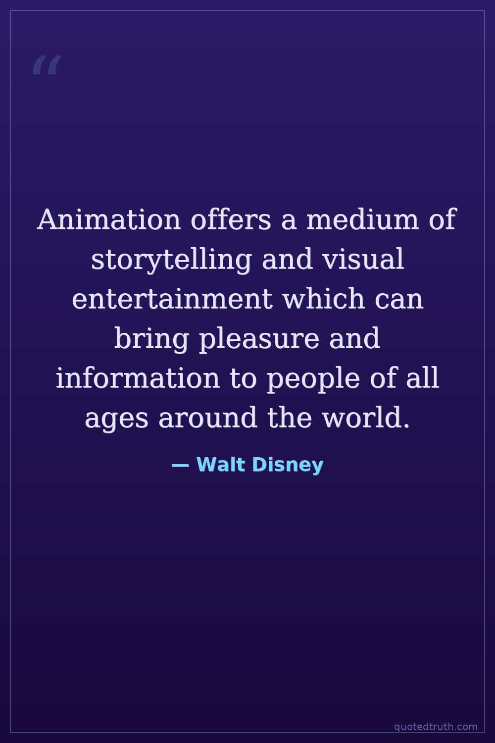 Animation offers a medium of storytelling and visual entertainment which can bring pleasure and information to people of all ages around the world.