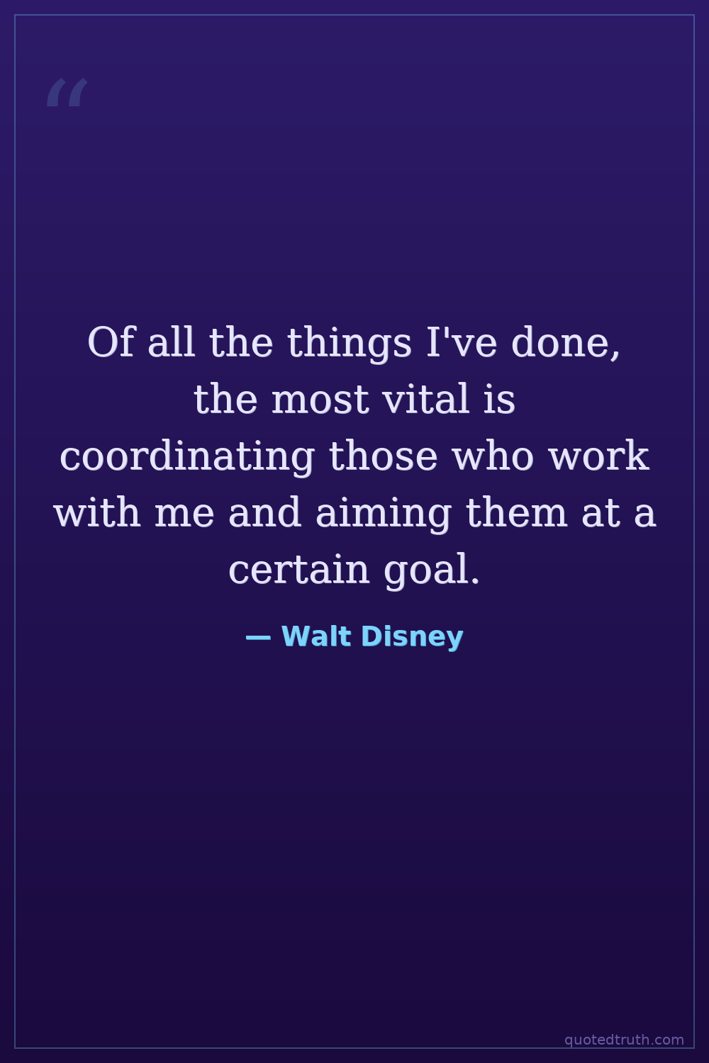 Of all the things I've done, the most vital is coordinating those who work with me and aiming them at a certain goal.