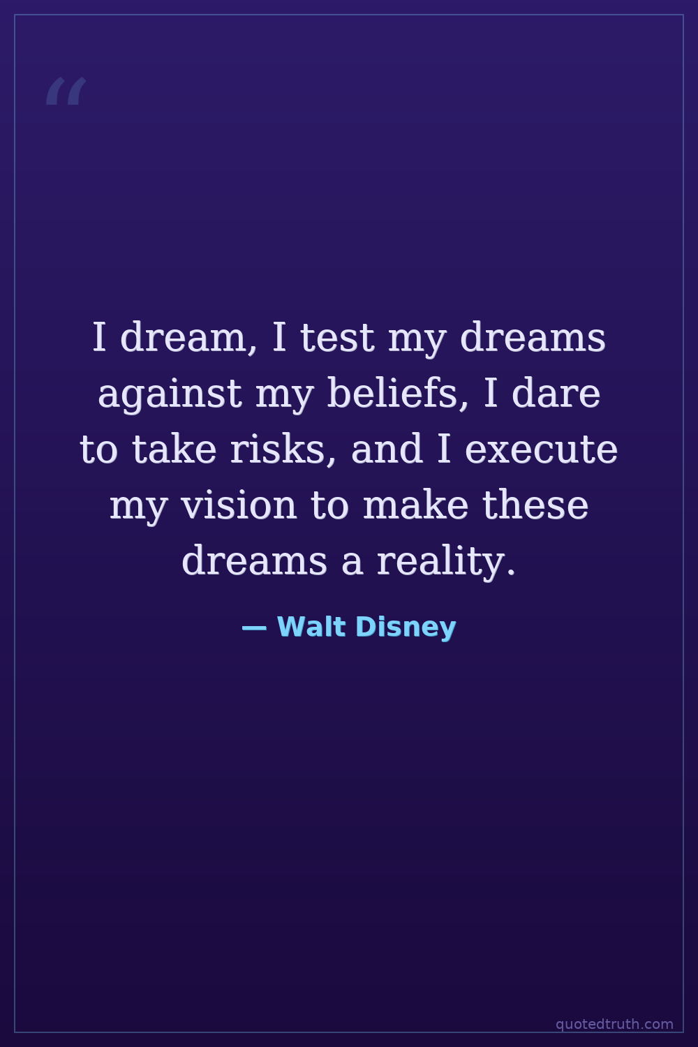 I dream, I test my dreams against my beliefs, I dare to take risks, and I execute my vision to make these dreams a reality.