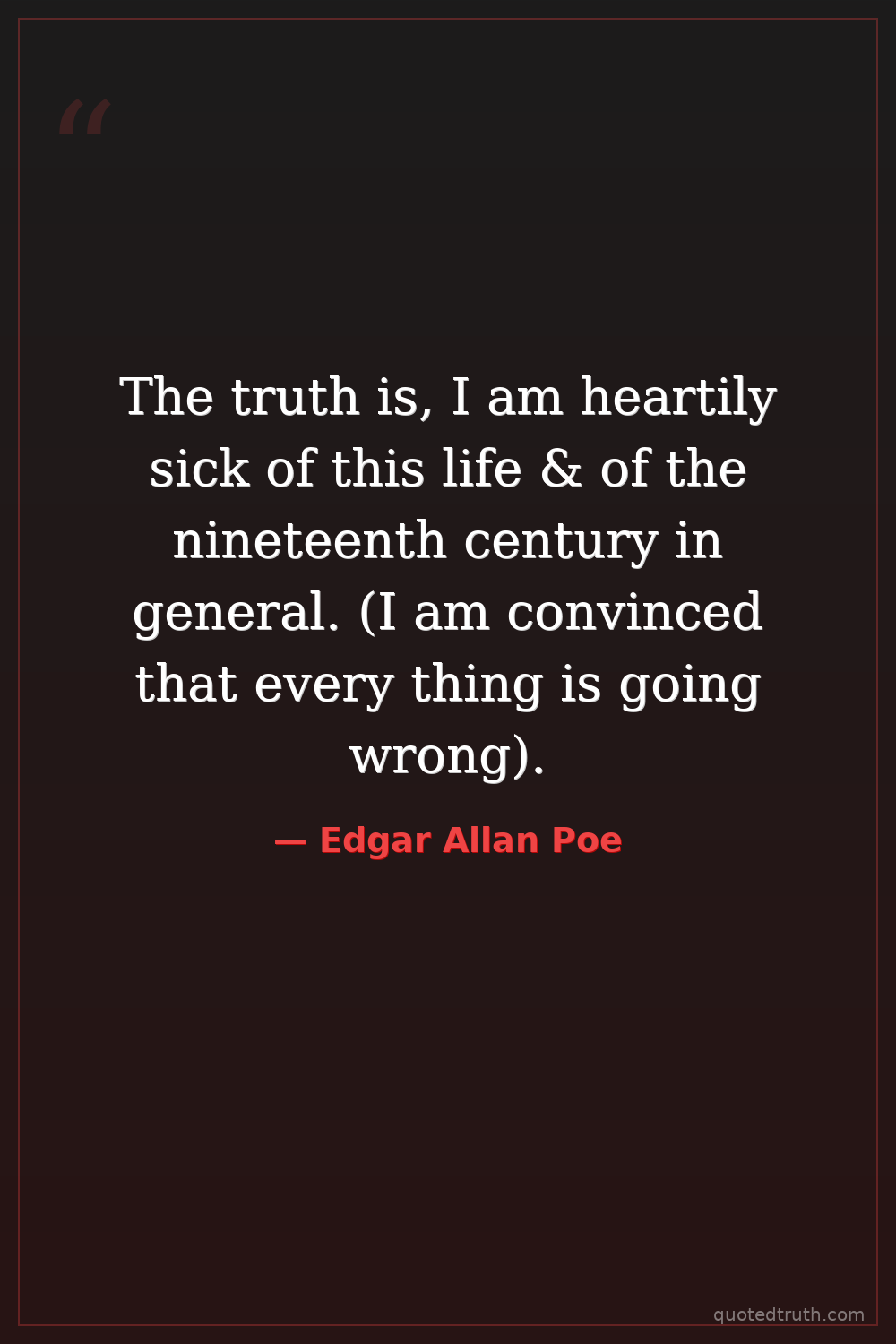 The truth is, I am heartily sick of this life & of the nineteenth century in general. (I am convinced that every thing is going wrong).