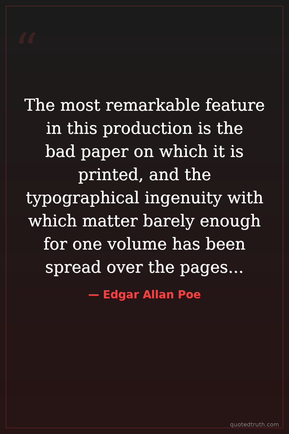 The most remarkable feature in this production is the bad paper on which it is printed, and the typographical ingenuity with which matter barely enough for one volume has been spread over the pages of two...