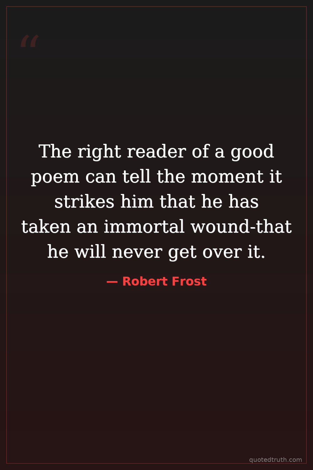 The right reader of a good poem can tell the moment it strikes him that he has taken an immortal wound-that he will never get over it.