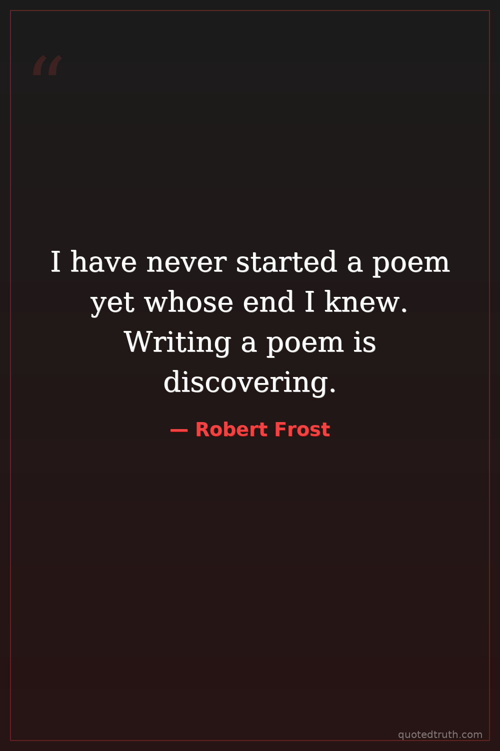 I have never started a poem yet whose end I knew. Writing a poem is discovering.