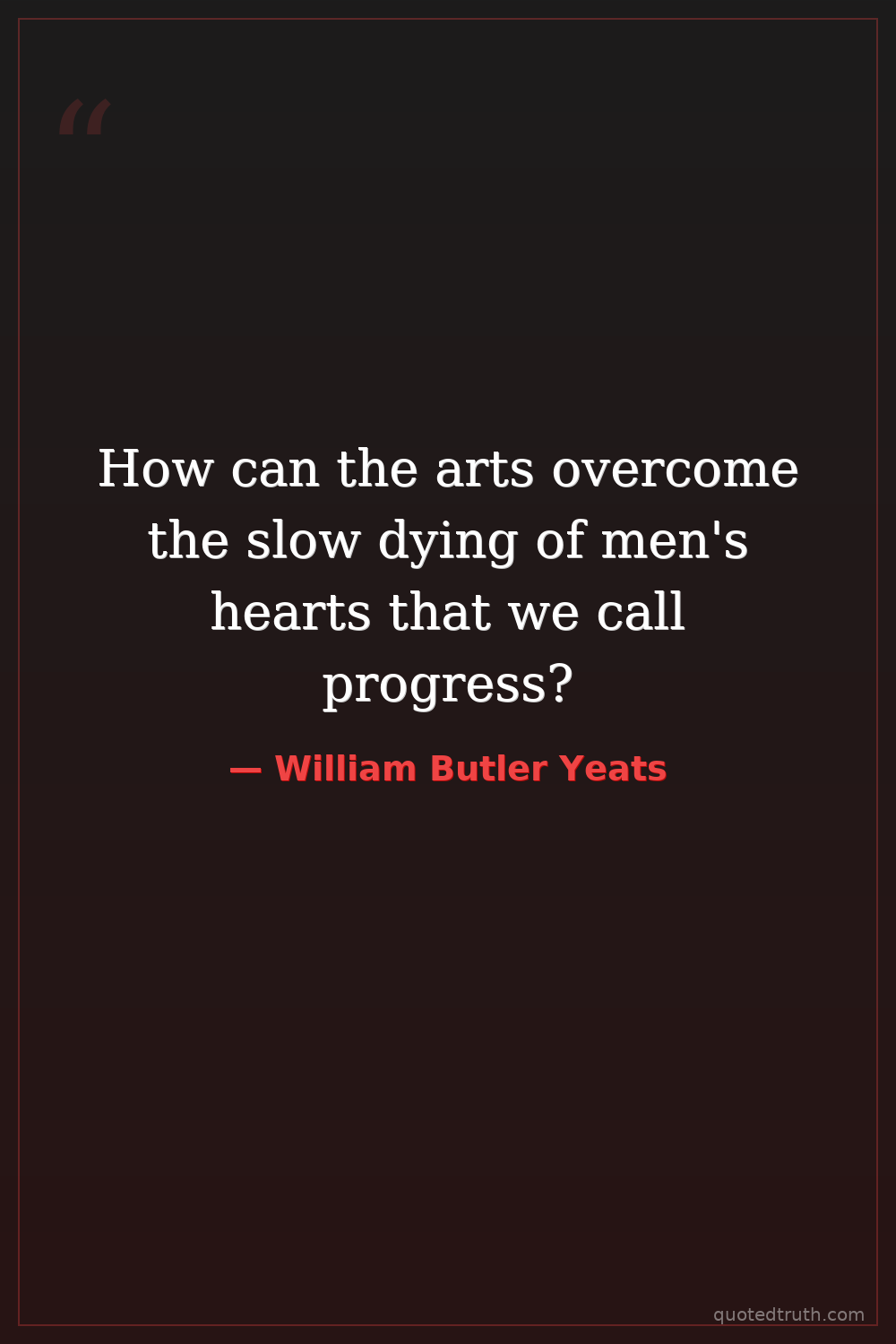 How can the arts overcome the slow dying of men's hearts that we call progress?