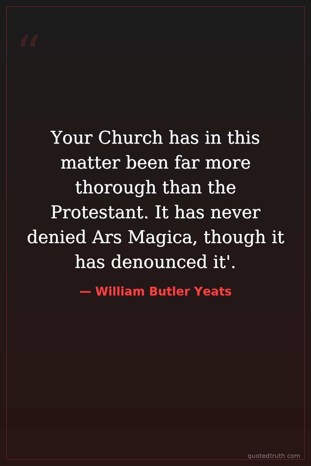 Your Church has in this matter been far more thorough than the Protestant. It has never denied Ars Magica, though it has denounced it'.