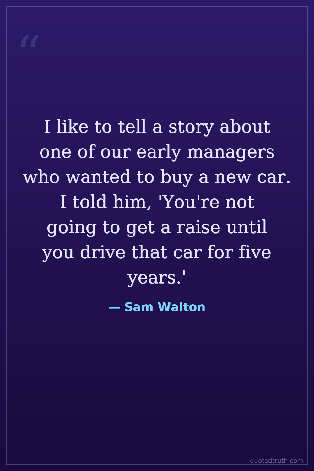 I like to tell a story about one of our early managers who wanted to buy a new car. I told him, 'You're not going to get a raise until you drive that car for five years.'