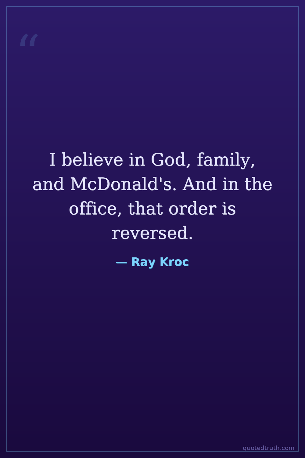 I believe in God, family, and McDonald's. And in the office, that order is reversed.