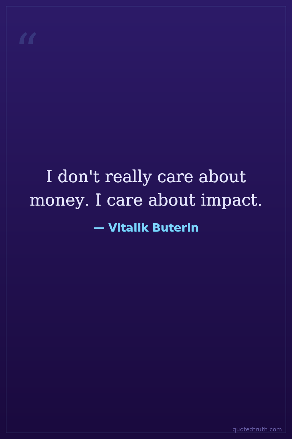 I don't really care about money. I care about impact.