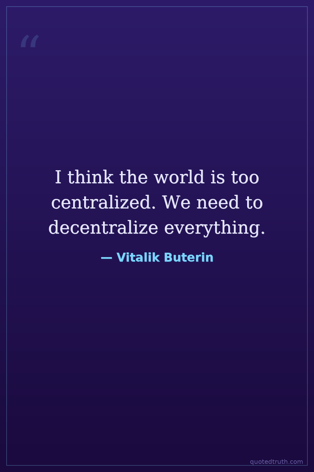 I think the world is too centralized. We need to decentralize everything.