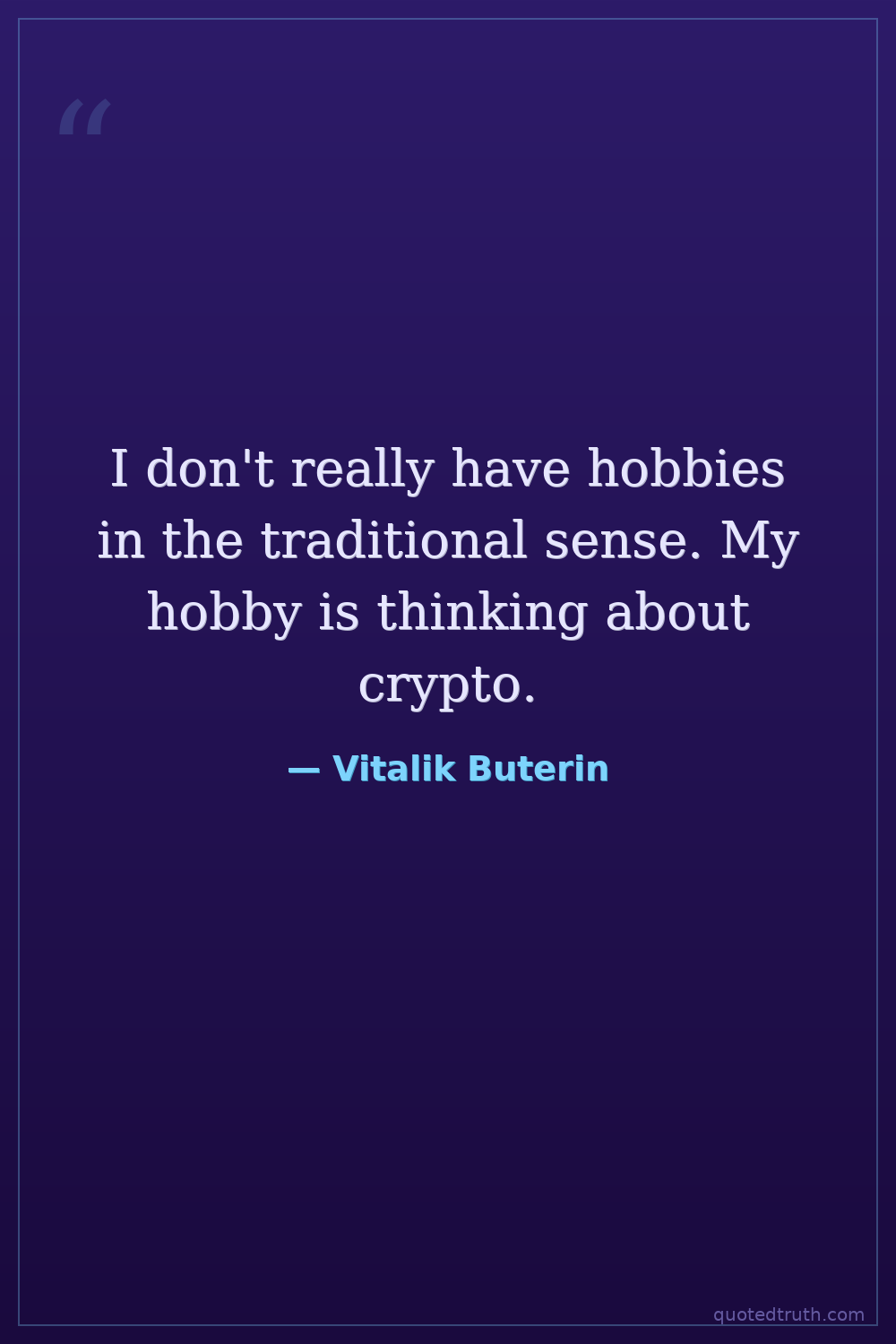 I don't really have hobbies in the traditional sense. My hobby is thinking about crypto.