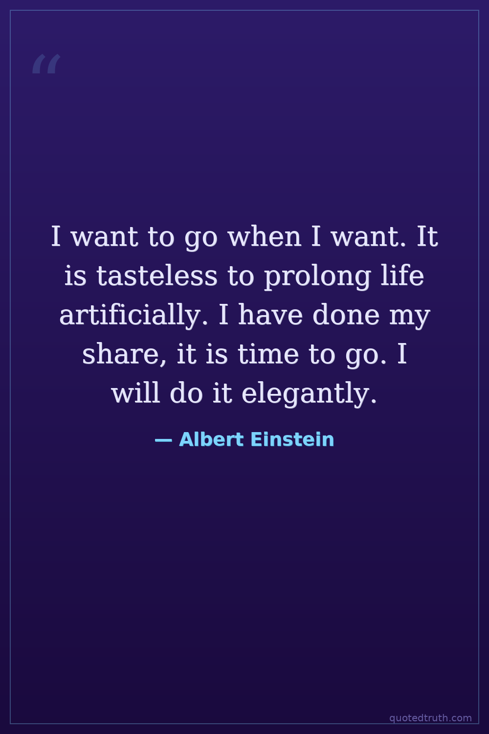 I want to go when I want. It is tasteless to prolong life artificially. I have done my share, it is time to go. I will do it elegantly.