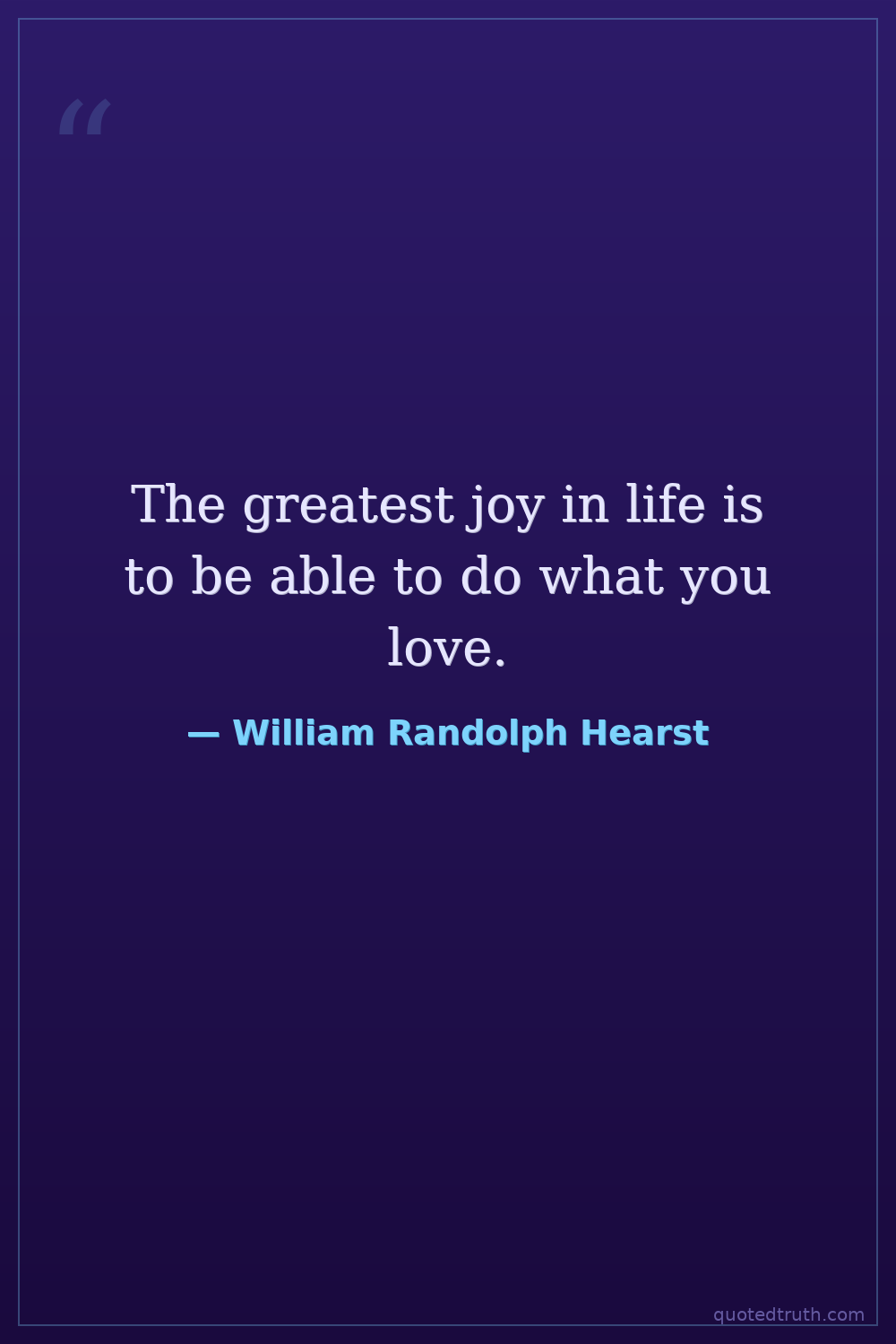 The greatest joy in life is to be able to do what you love.