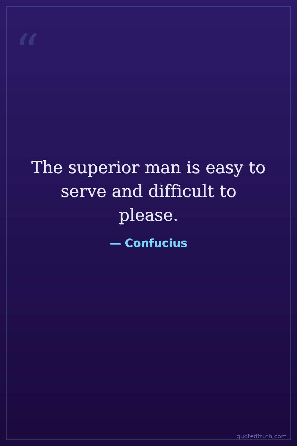 The superior man is easy to serve and difficult to please.