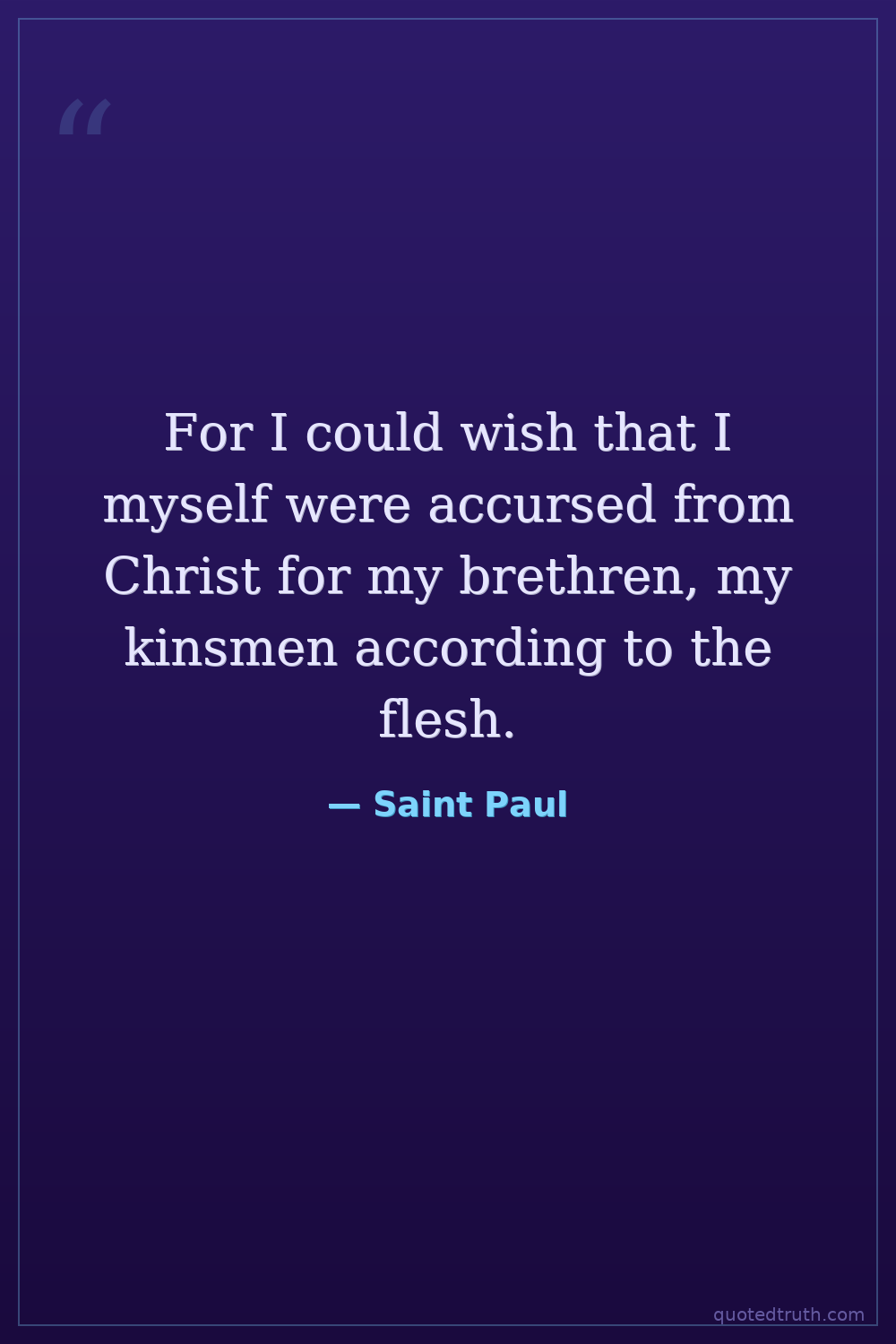 For I could wish that I myself were accursed from Christ for my brethren, my kinsmen according to the flesh.
