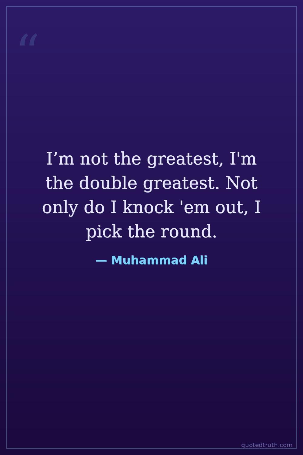 I’m not the greatest, I'm the double greatest. Not only do I knock 'em out, I pick the round.