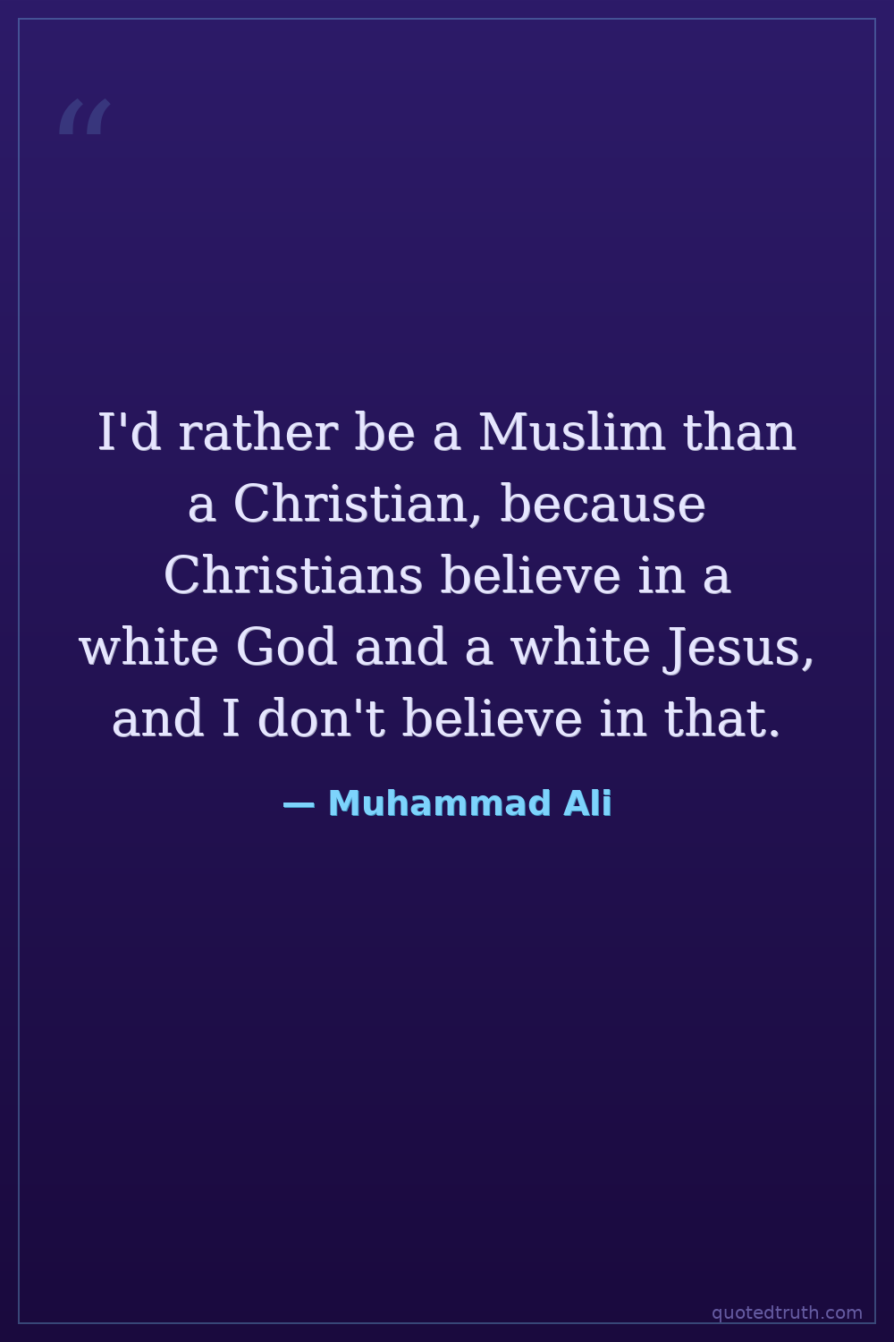 I'd rather be a Muslim than a Christian, because Christians believe in a white God and a white Jesus, and I don't believe in that.
