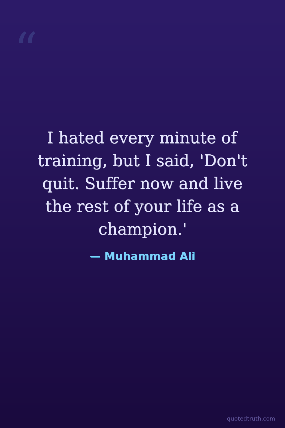 I hated every minute of training, but I said, 'Don't quit. Suffer now and live the rest of your life as a champion.'