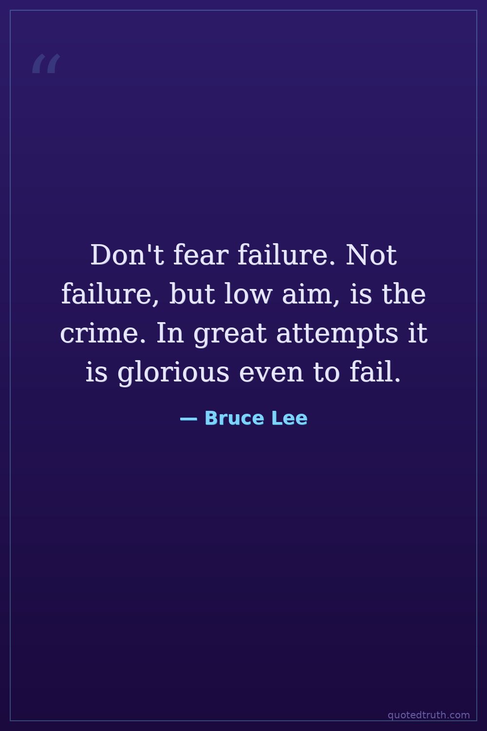 Don't fear failure. Not failure, but low aim, is the crime. In great attempts it is glorious even to fail.