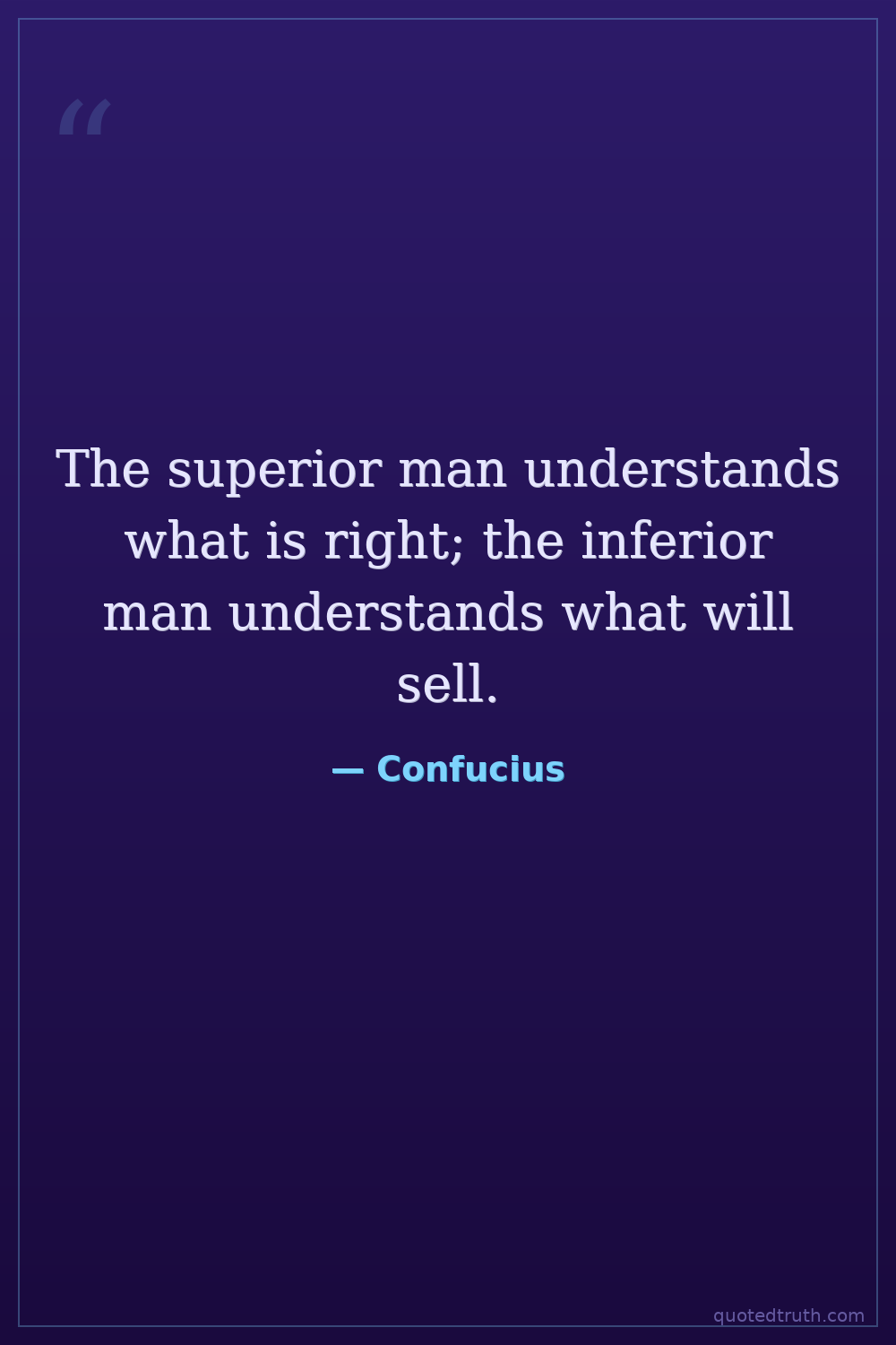 The superior man understands what is right; the inferior man understands what will sell.