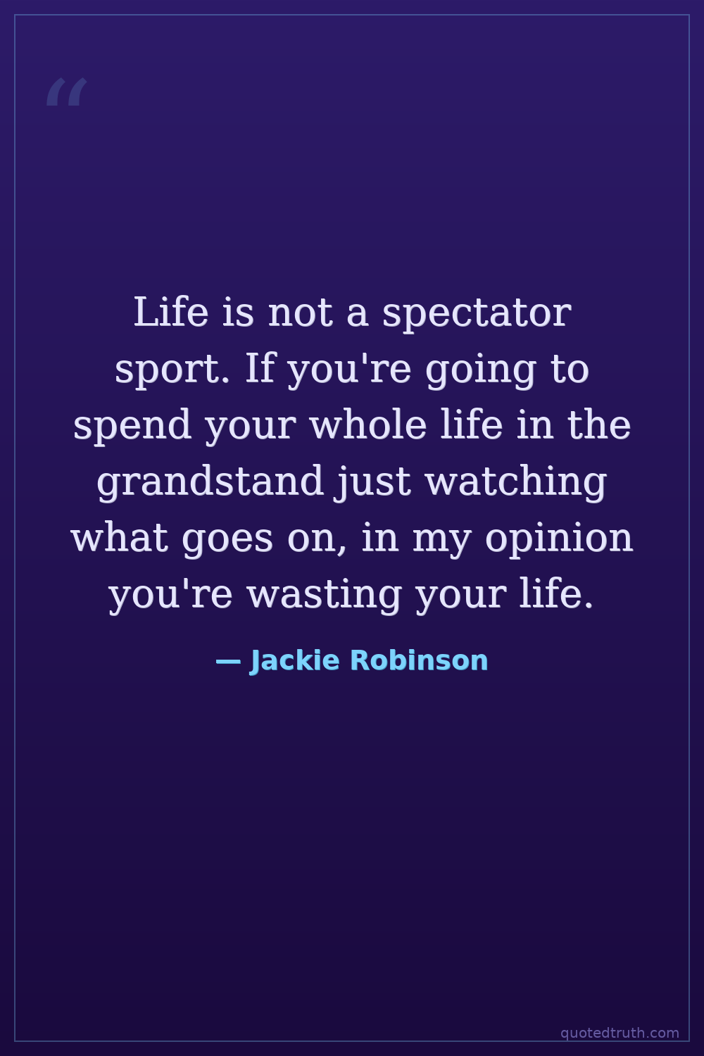 Life is not a spectator sport. If you're going to spend your whole life in the grandstand just watching what goes on, in my opinion you're wasting your life.