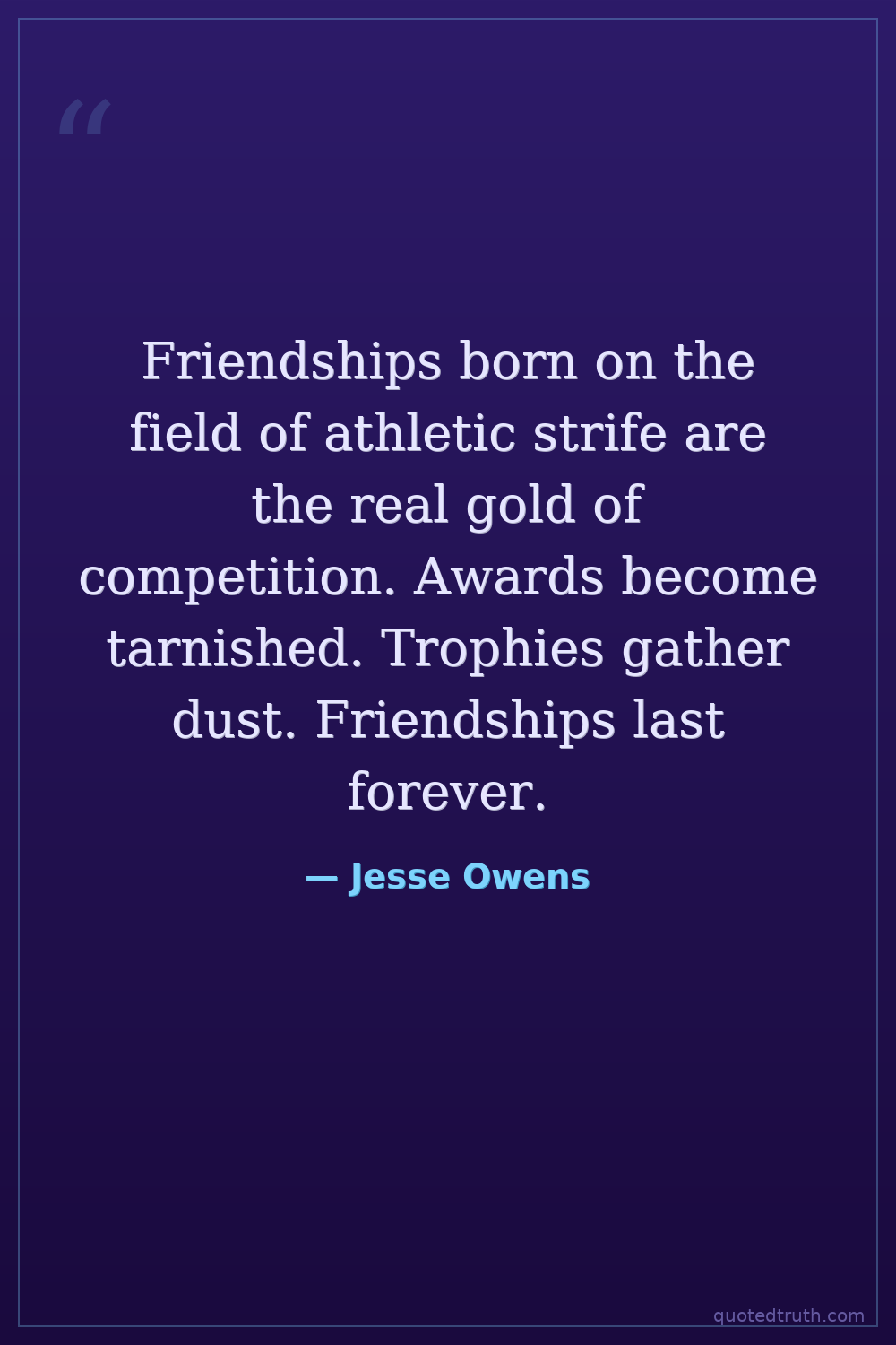 Friendships born on the field of athletic strife are the real gold of competition. Awards become tarnished. Trophies gather dust. Friendships last forever.