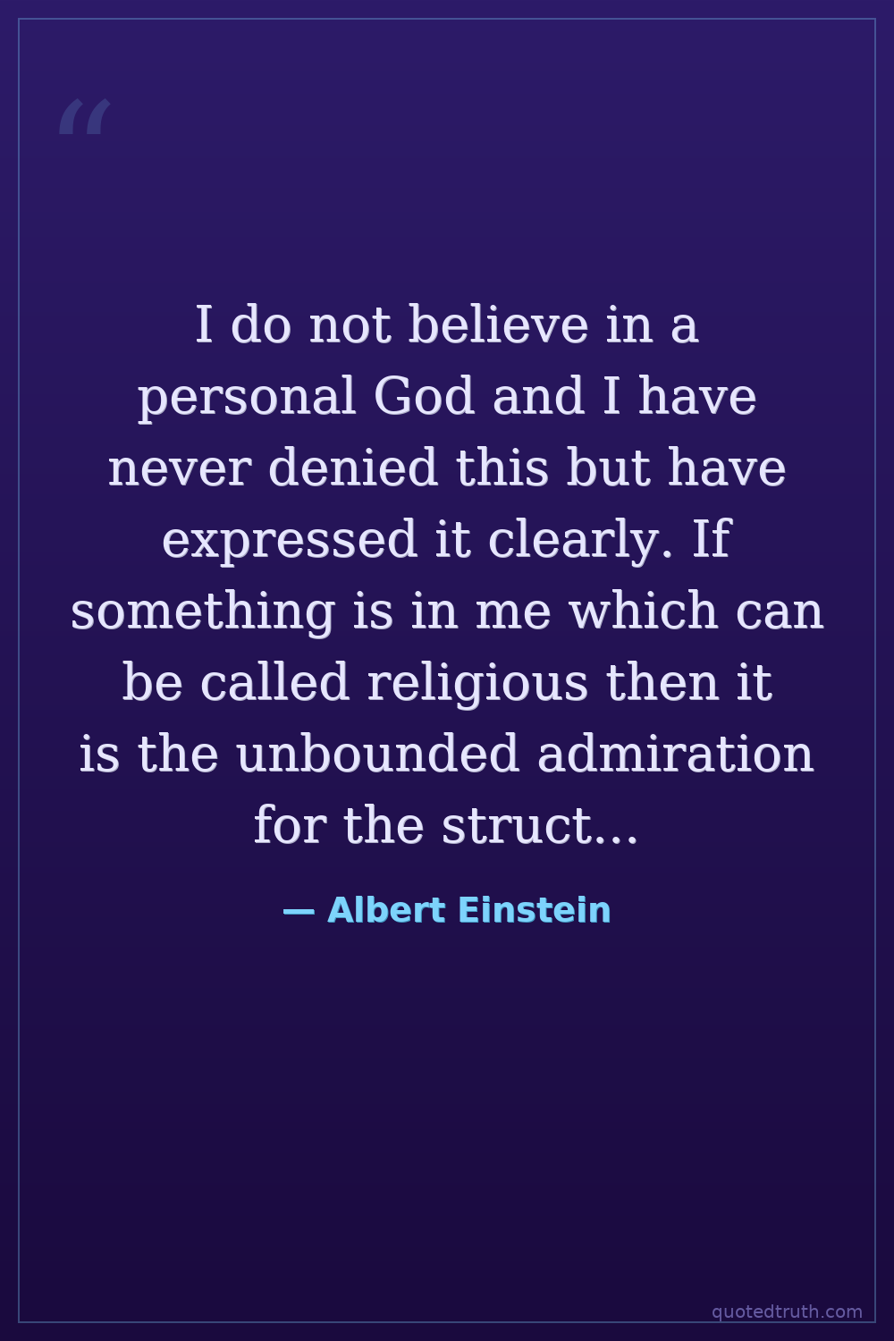 I do not believe in a personal God and I have never denied this but have expressed it clearly. If something is in me which can be called religious then it is the unbounded admiration for the structure of the world so far as our science can reveal it.