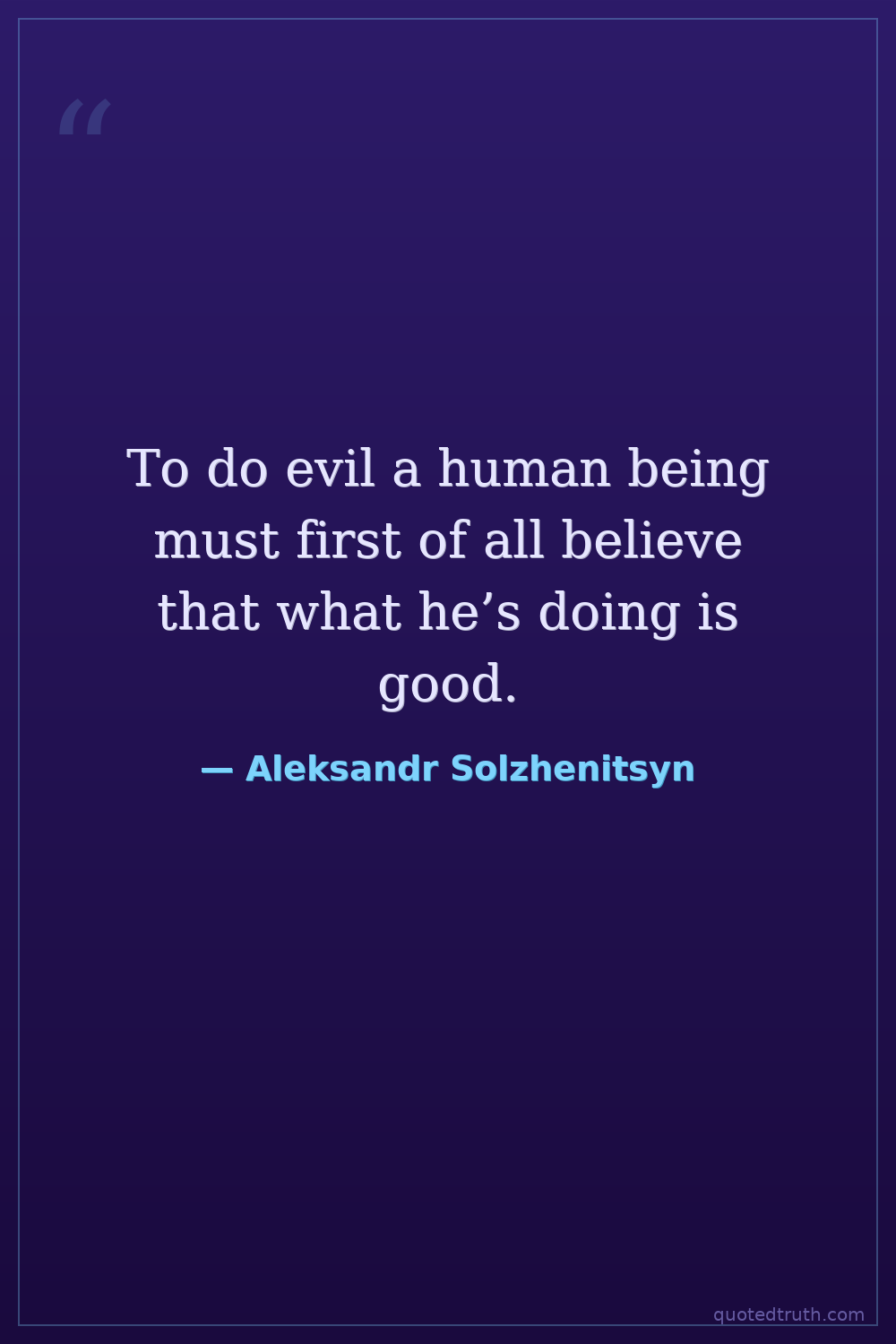 To do evil a human being must first of all believe that what he’s doing is good.