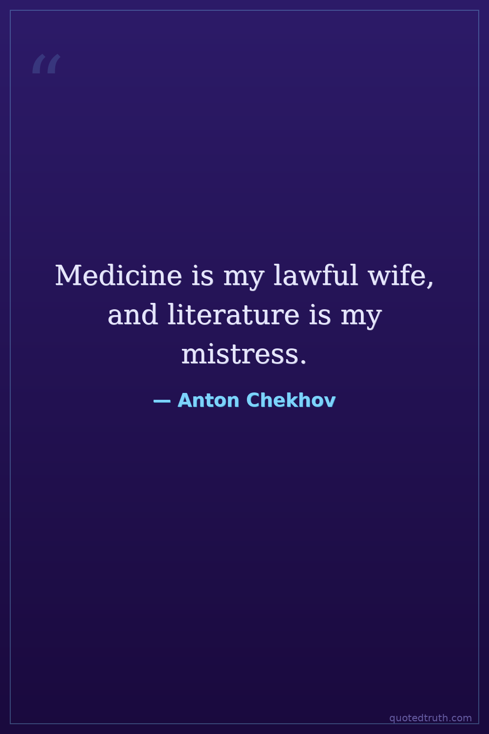 Medicine is my lawful wife, and literature is my mistress.