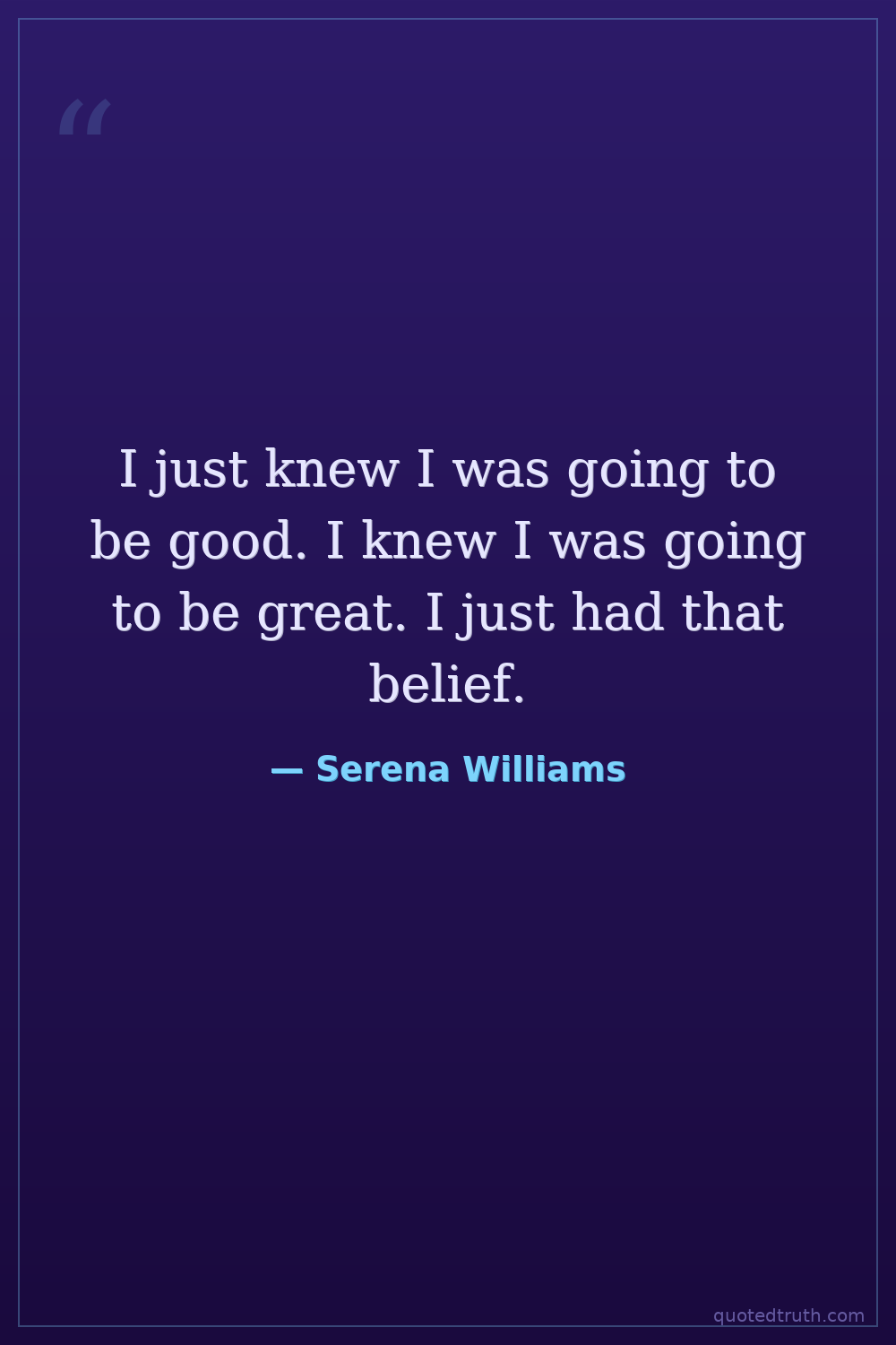 I just knew I was going to be good. I knew I was going to be great. I just had that belief.