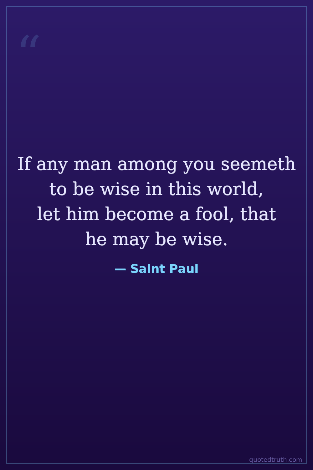 If any man among you seemeth to be wise in this world, let him become a fool, that he may be wise.